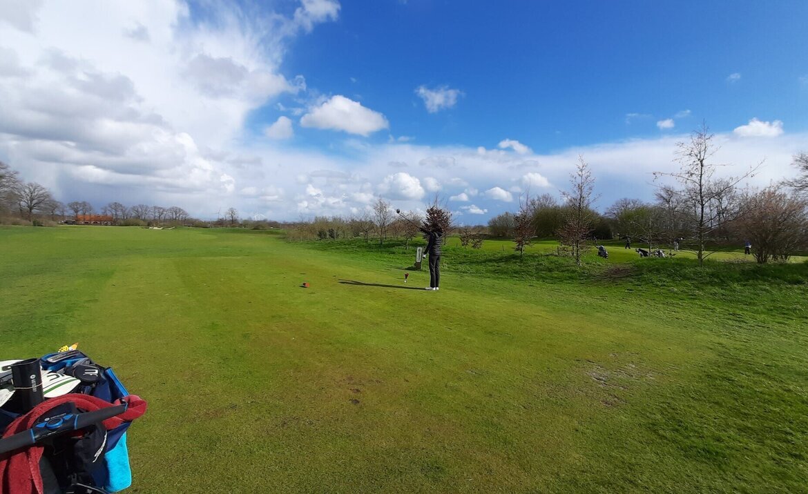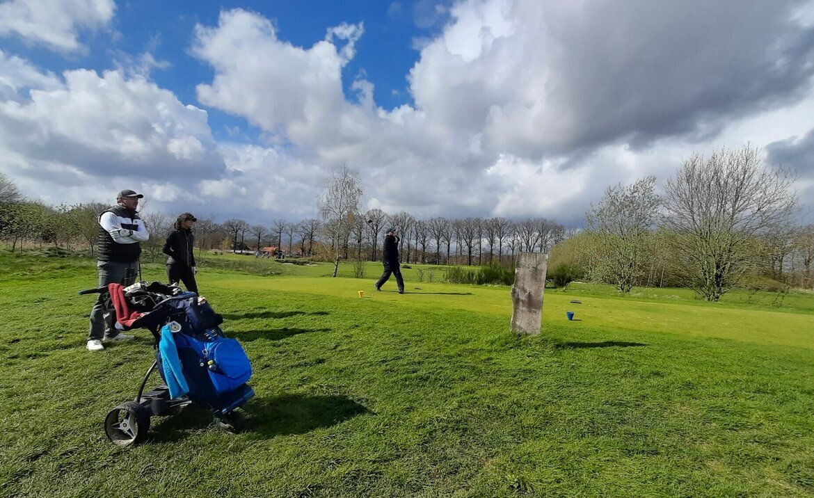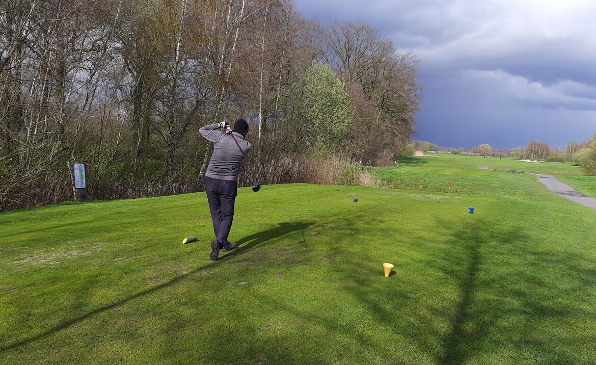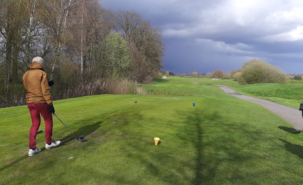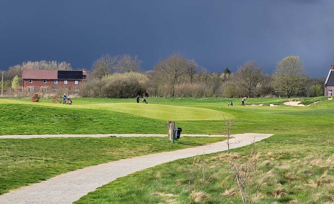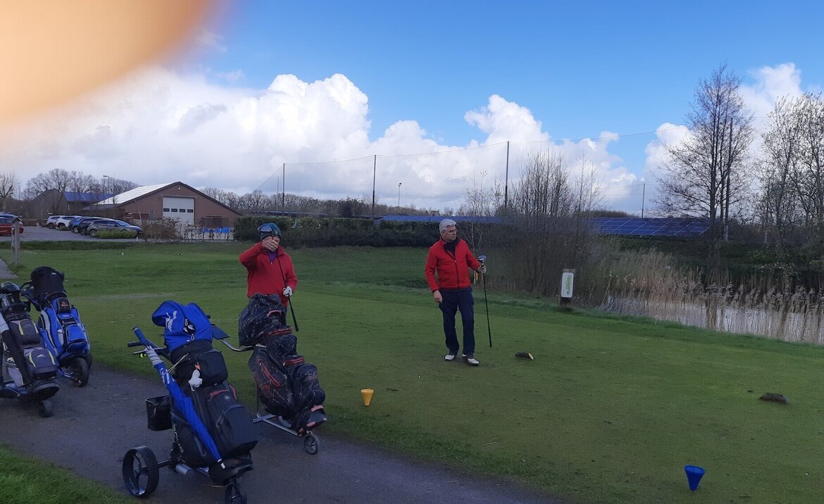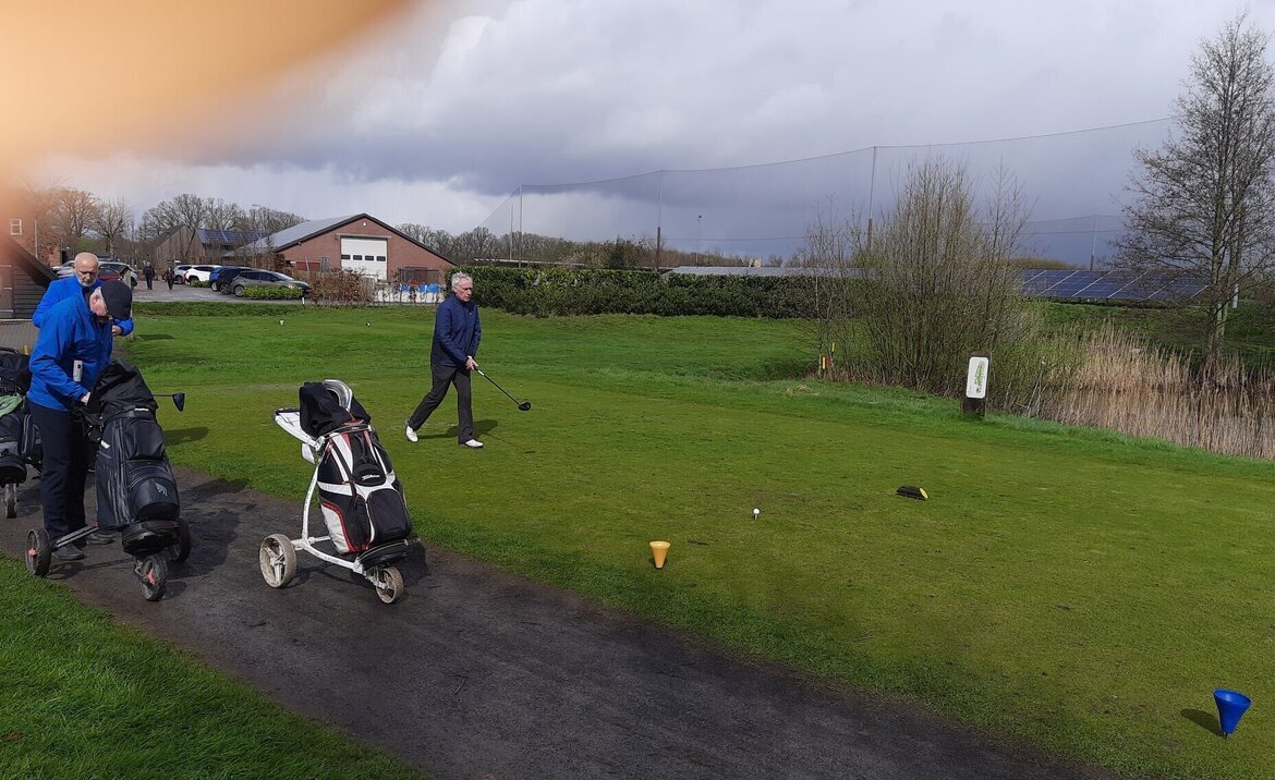 Al een enkele (hagel)bui met een dreigende zwarte lucht. Op het moment dat het zonnetje het toch weer won was het prima golfweer. Straf fris windje maar toch.