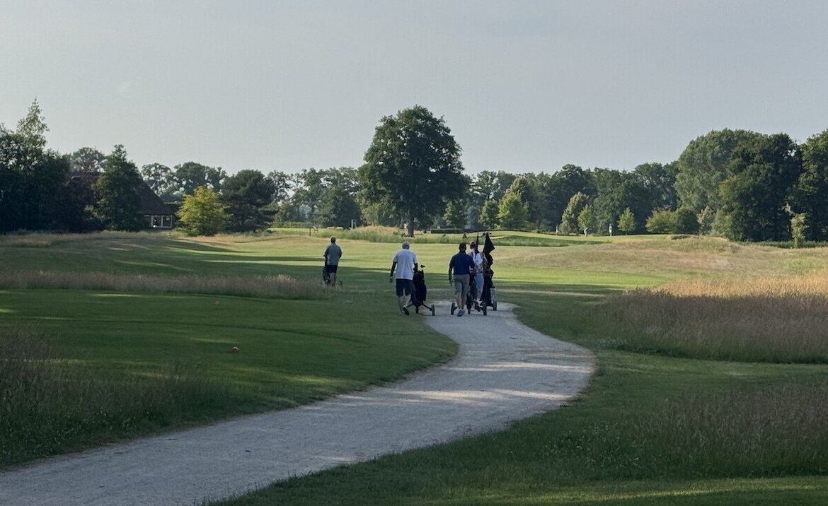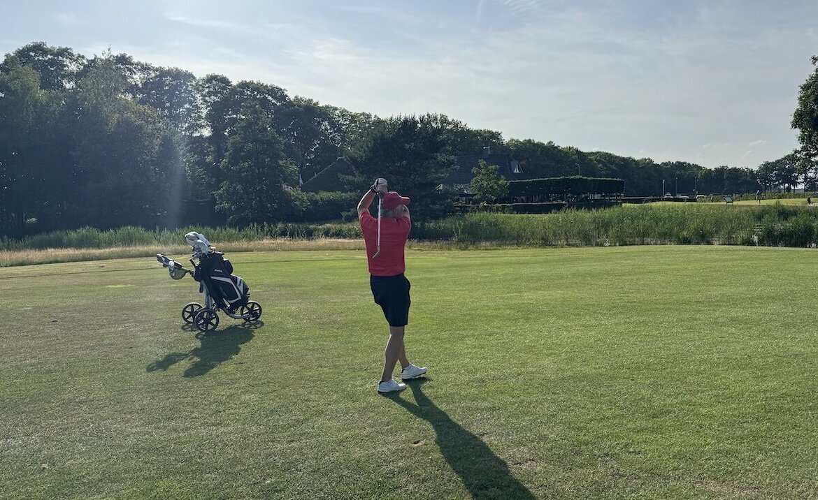 De dag begon zonnig en broeierig warm en het beloofde dus flink zweten te worden in de baan. Maar na een paar holes vielen er wat druppeltjes, trok de wind een beetje aan en zakte de temperatuur ook een paar graden. Best aangenaam voor een mooi rondje golf dus!